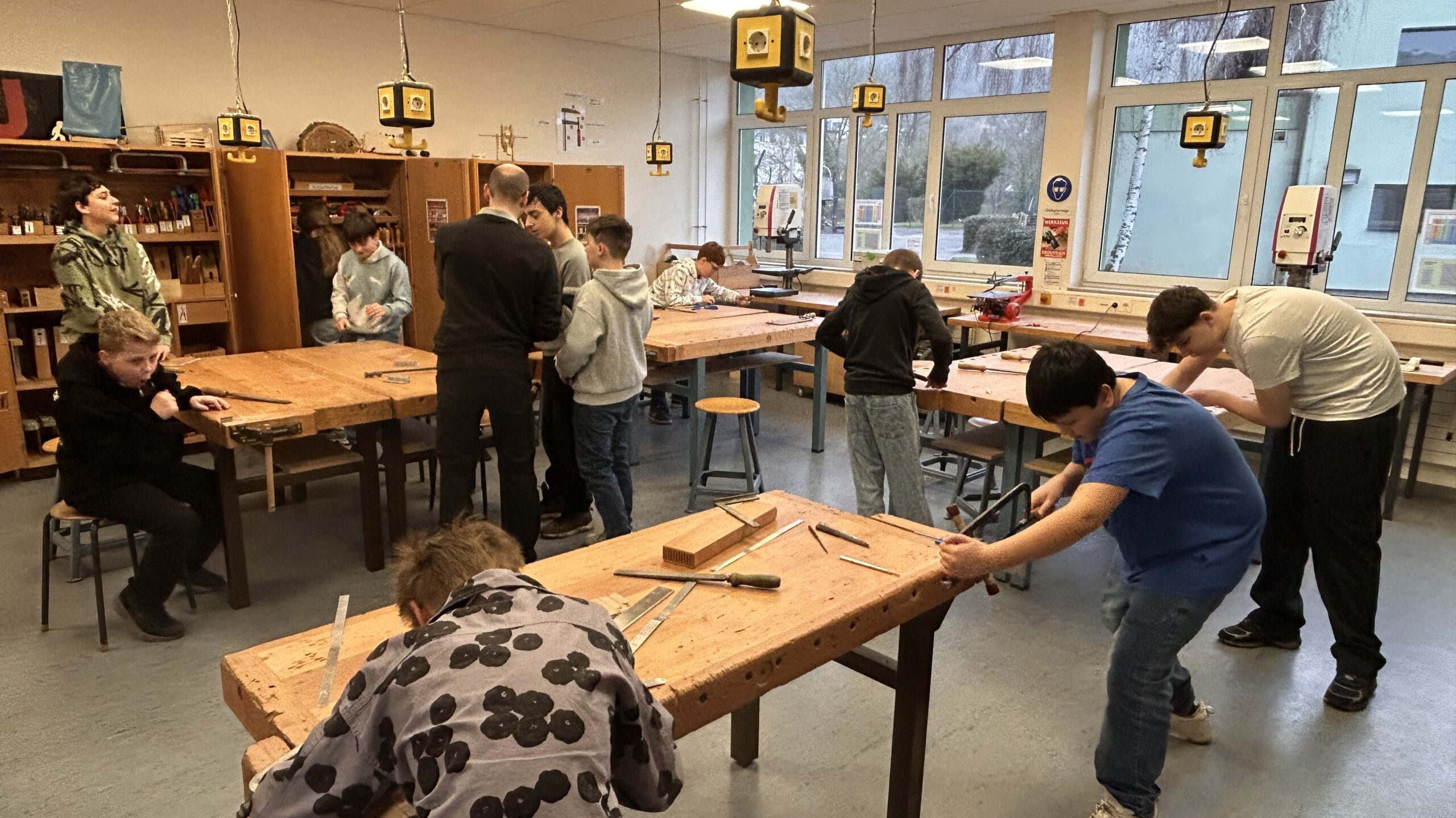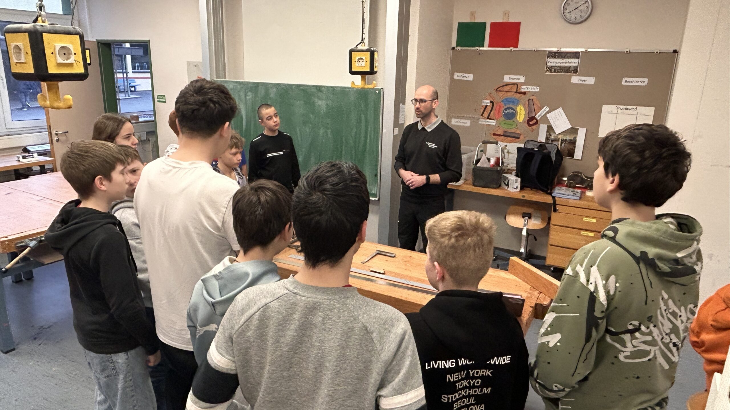 Besonderen Besuch erhielt kürzlich die 6. Klasse im Technikunterricht: Die Firma Schwend Metallbau war zu Gast und brachte den Schülern die Welt der Metallbearbeitung ein Stück näher. Metallbauer Herr Koprowski erklärte und zeigte aus erster Hand, wie Metall fachgerecht bearbeitet wird und welche Werkzeuge und Arbeitsschritte dabei wichtig sind.