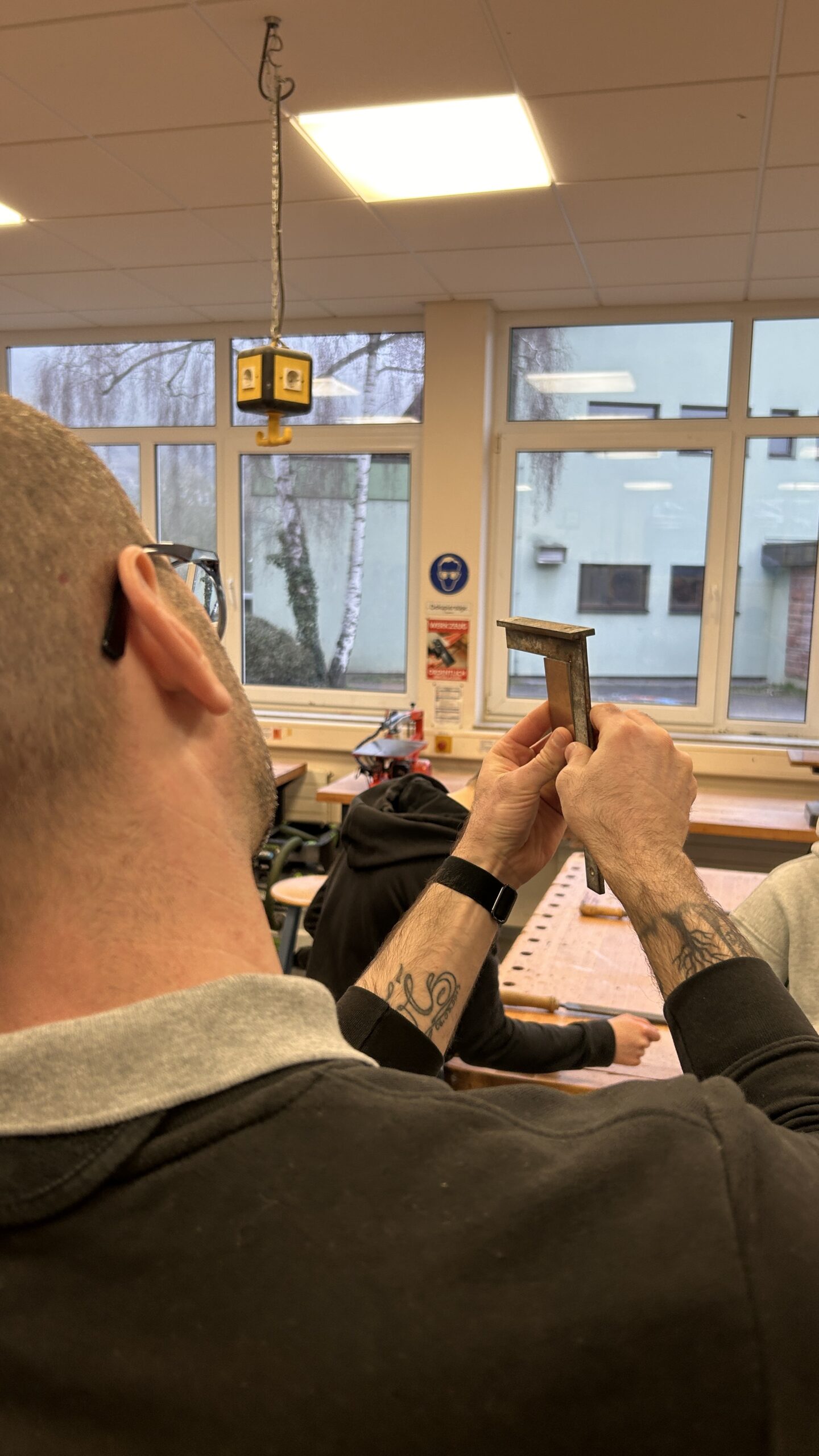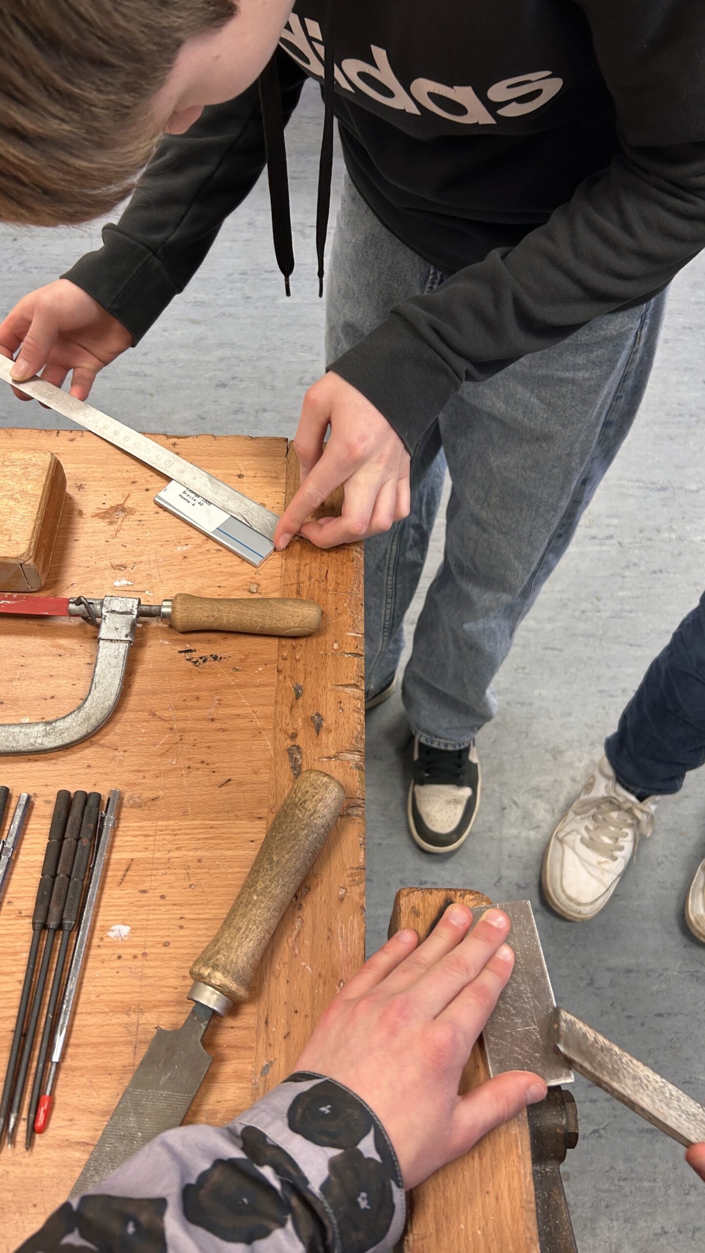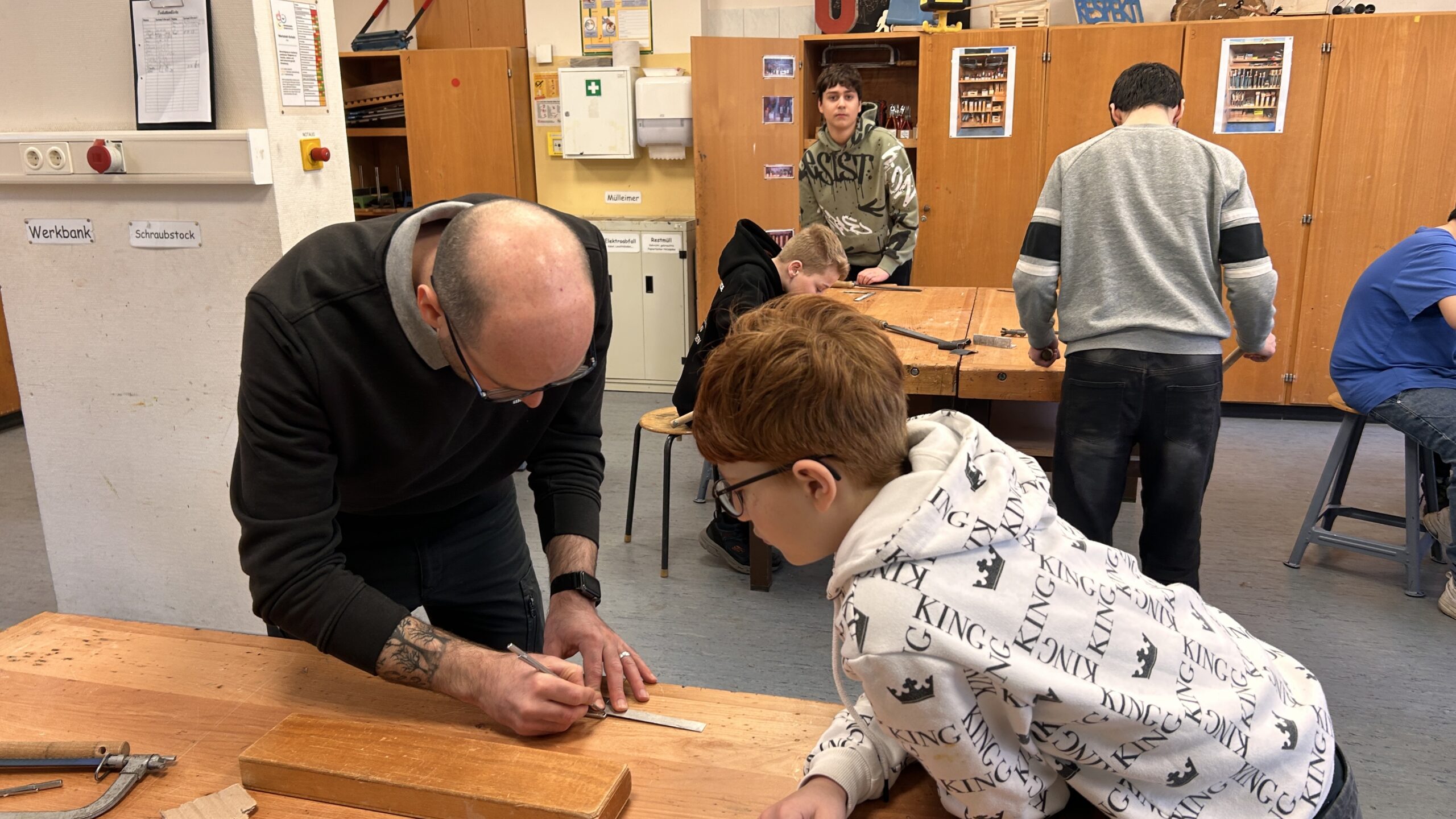 Die praktischen Tipps konnten die Schülerinnen und Schüler direkt für ihr aktuelles Projekt nutzen: Im Technikunterricht fertigen sie derzeit eine eigene Gürtelschnalle aus Metall. Durch die fachkundige Unterstützung erhielten sie wertvolle Einblicke in die Arbeit eines Metallbauers und lernten, worauf es bei präziser Metallbearbeitung ankommt.