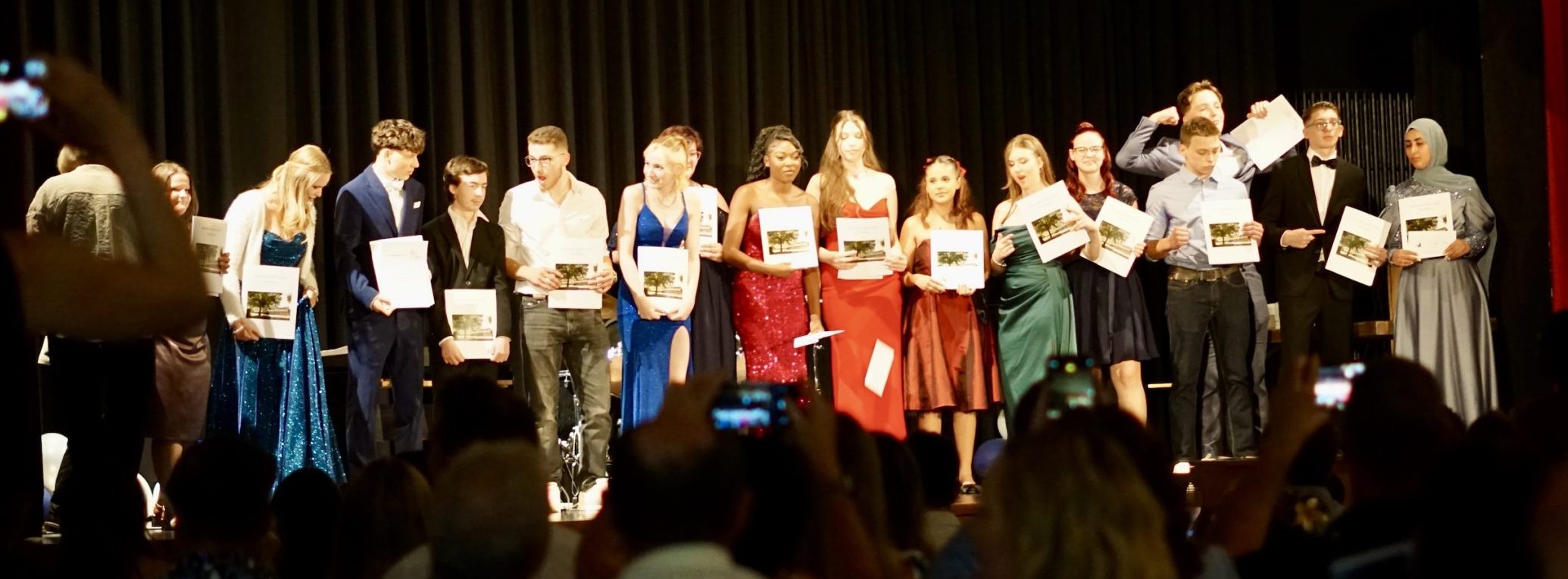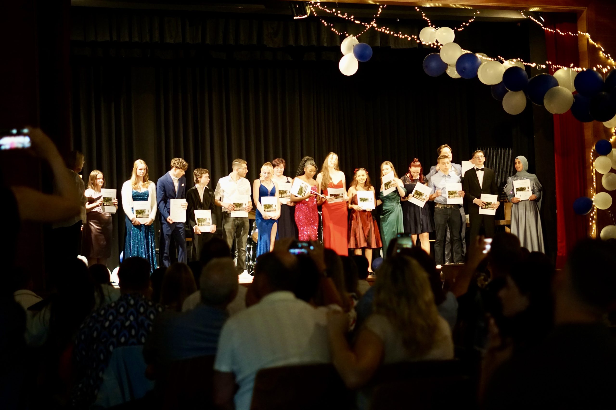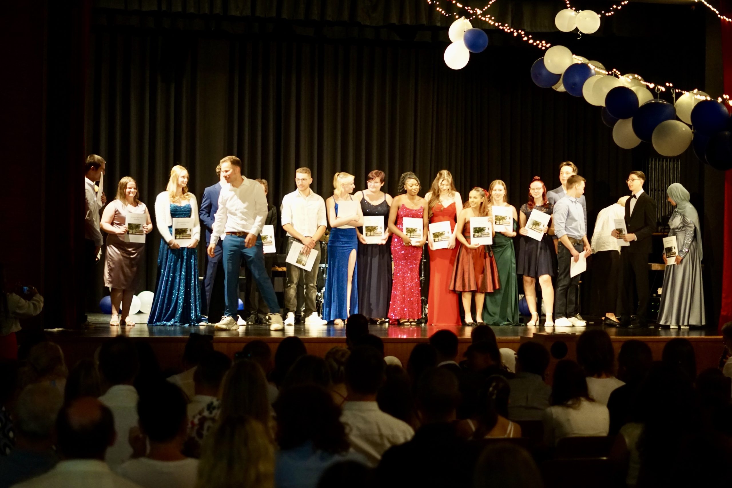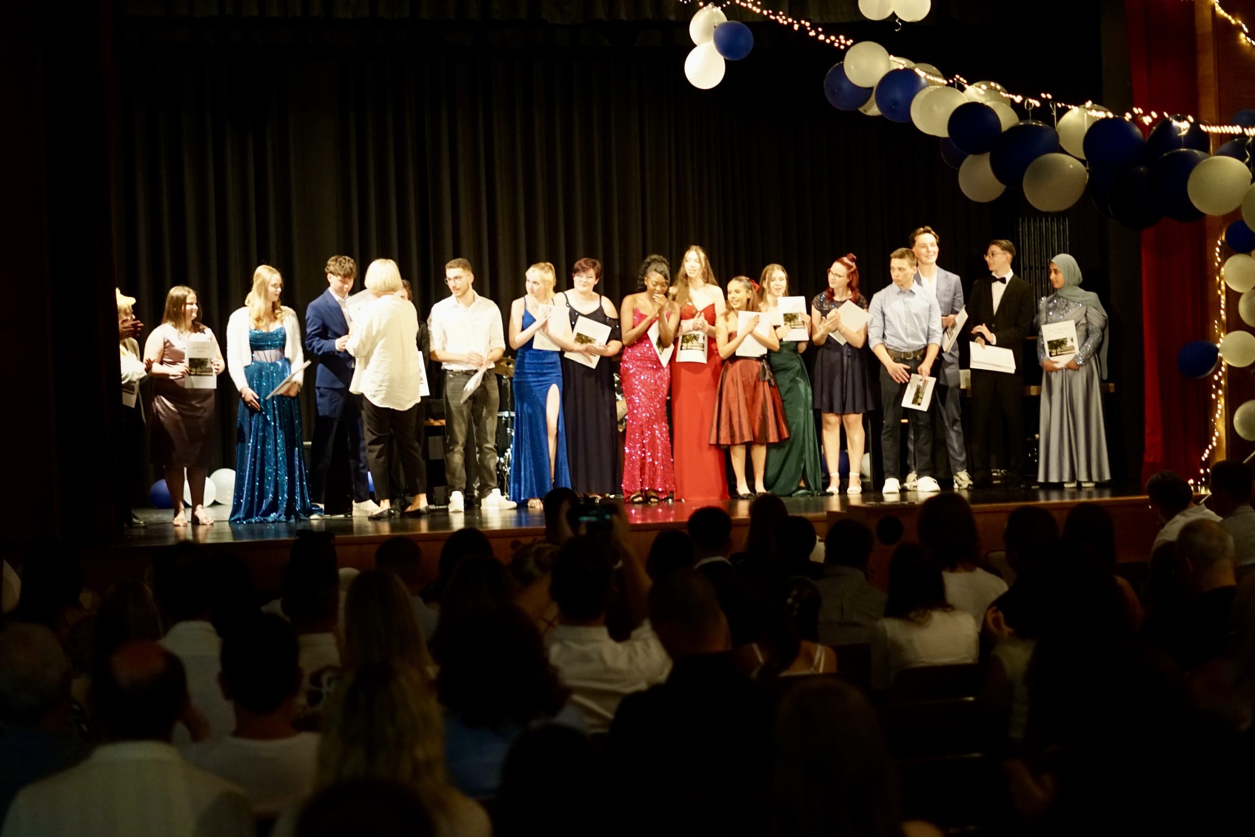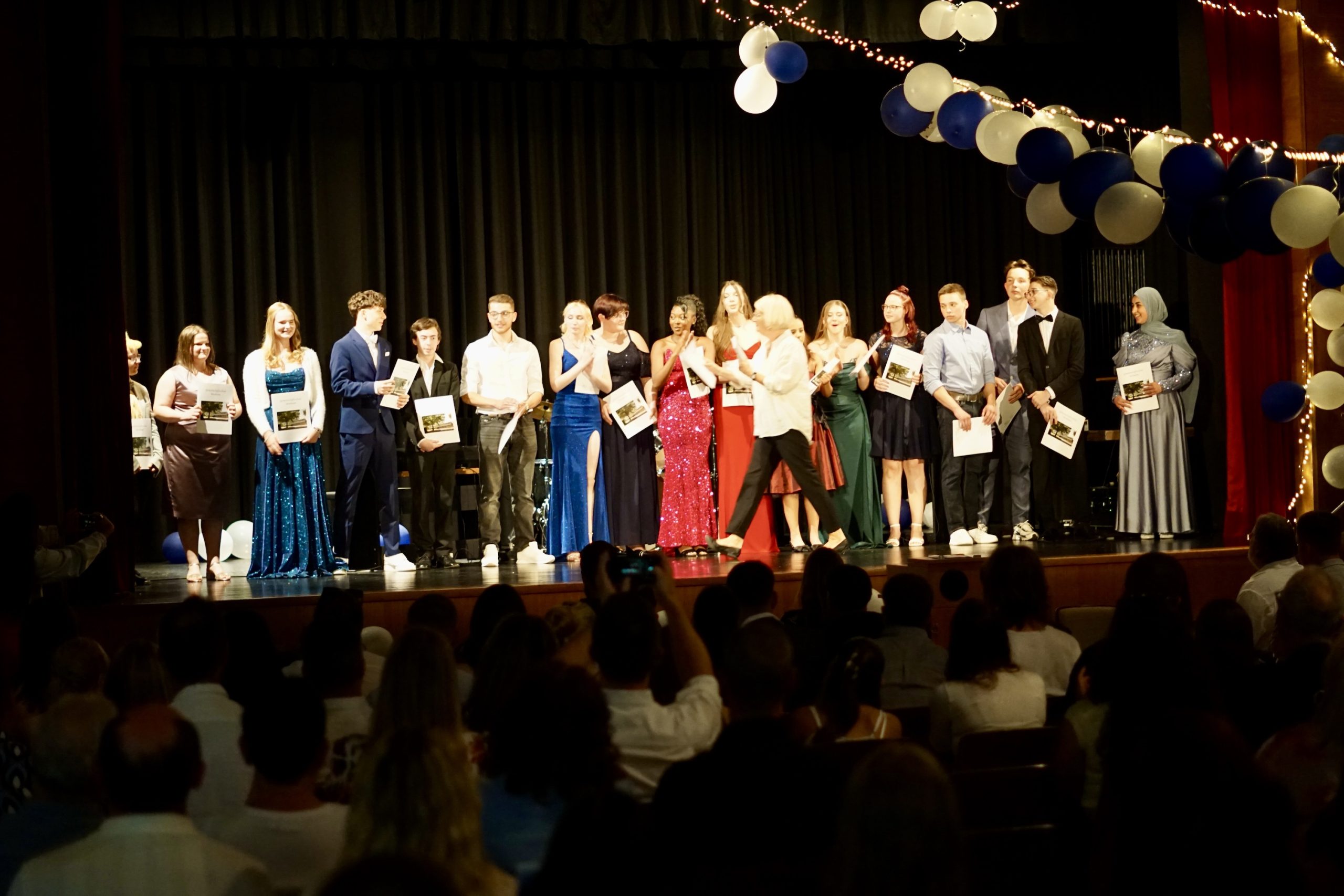 Dreißig Neuntklässler und zwanzig Zehntklässler konnten sich in diesem Jahr über ihre bestandenen Abschlüsse freuen und feierten aus diesem Anlass ihre Verabschiedung aus der Schule in unserer festlich geschmückten Aula. Mit Ihnen freuten sich unsere Schulleiter Herr Fink und Frau Thies, alle Lehrerinnen und Lehrer, Frau Tilch vom Förderverein, Oberbürgermeister Markus Herrera-Torrez und natürlich die Familien und Freunde der Absolventen. Neben vielen guten Wünschen für ihren weiteren Lebensweg gab es ein buntes Programm aus Erinnerungen und gemeinsamen Erlebnissen unserer nun ehemaligen Schülerinnen und Schüler. Für ein leckeres Buffet und Getränke hatten die 8. Klassen mit ihren Eltern gut vorgesorgt. Hier gibt es nun einige Fotos von der Feier. Durch Anklicken lassen sie sich in der Originalgröße herunterladen.