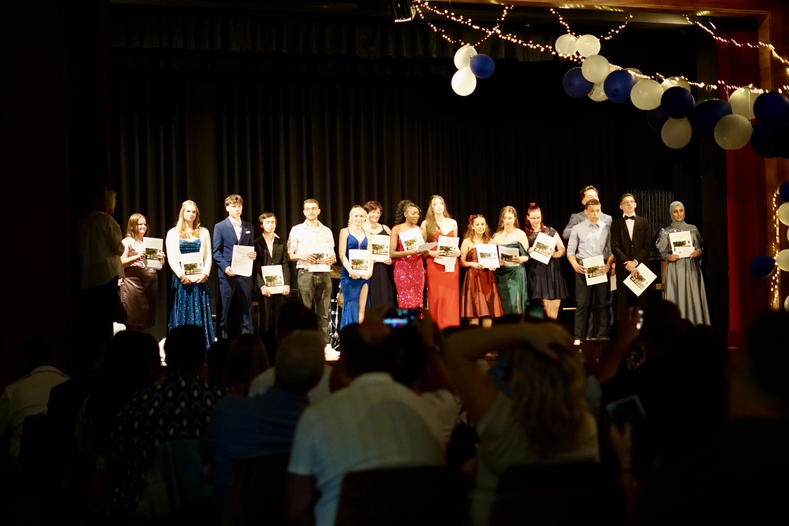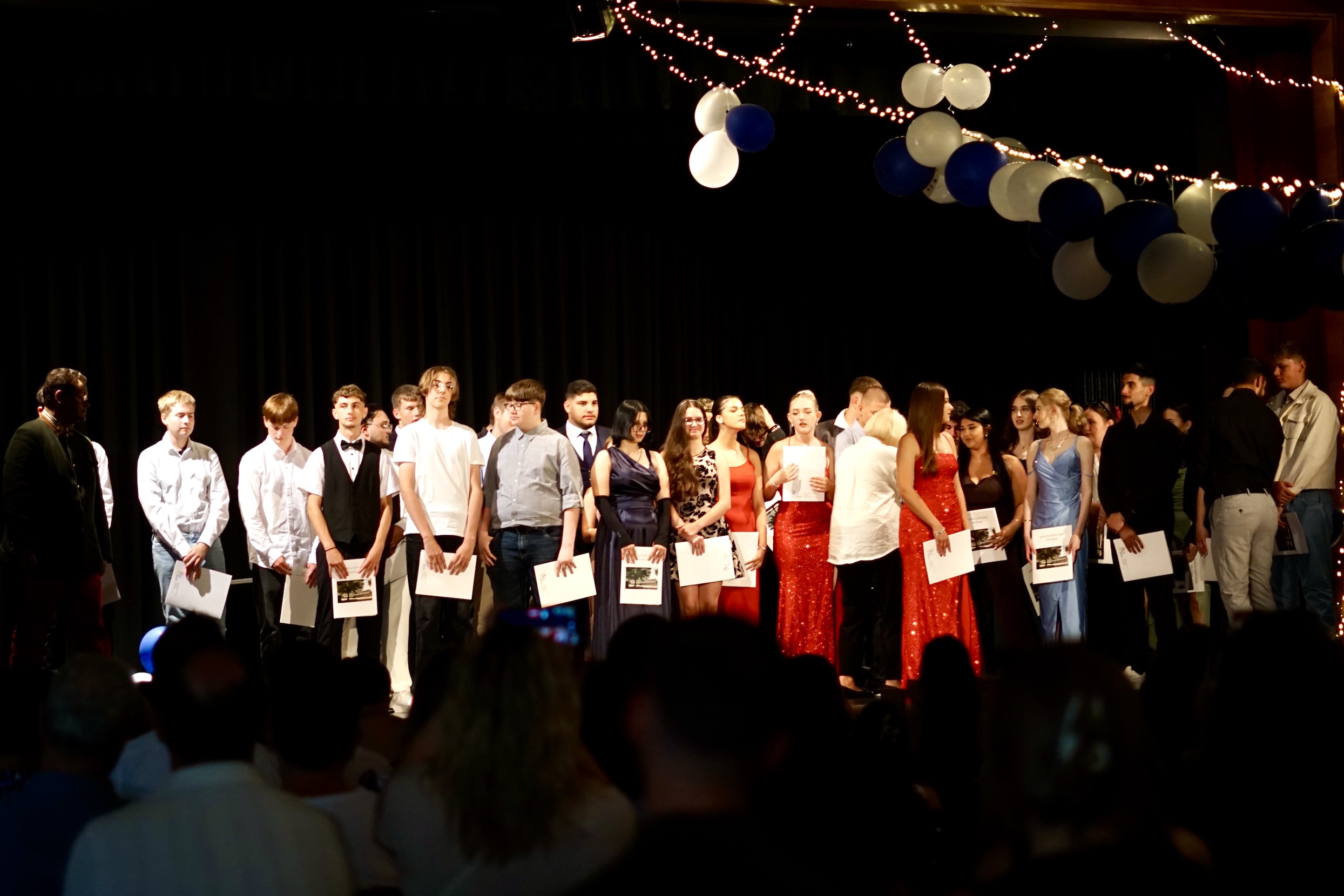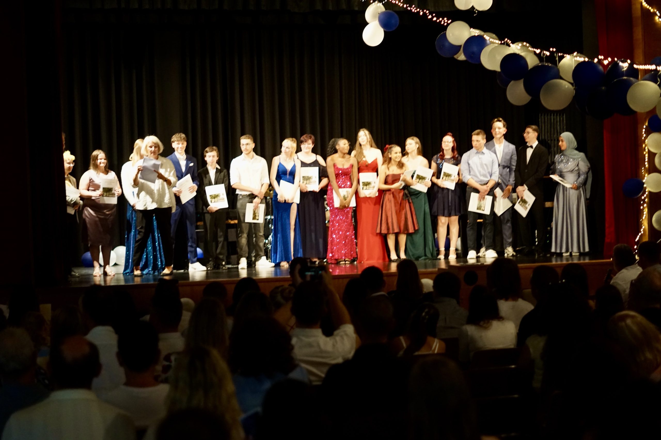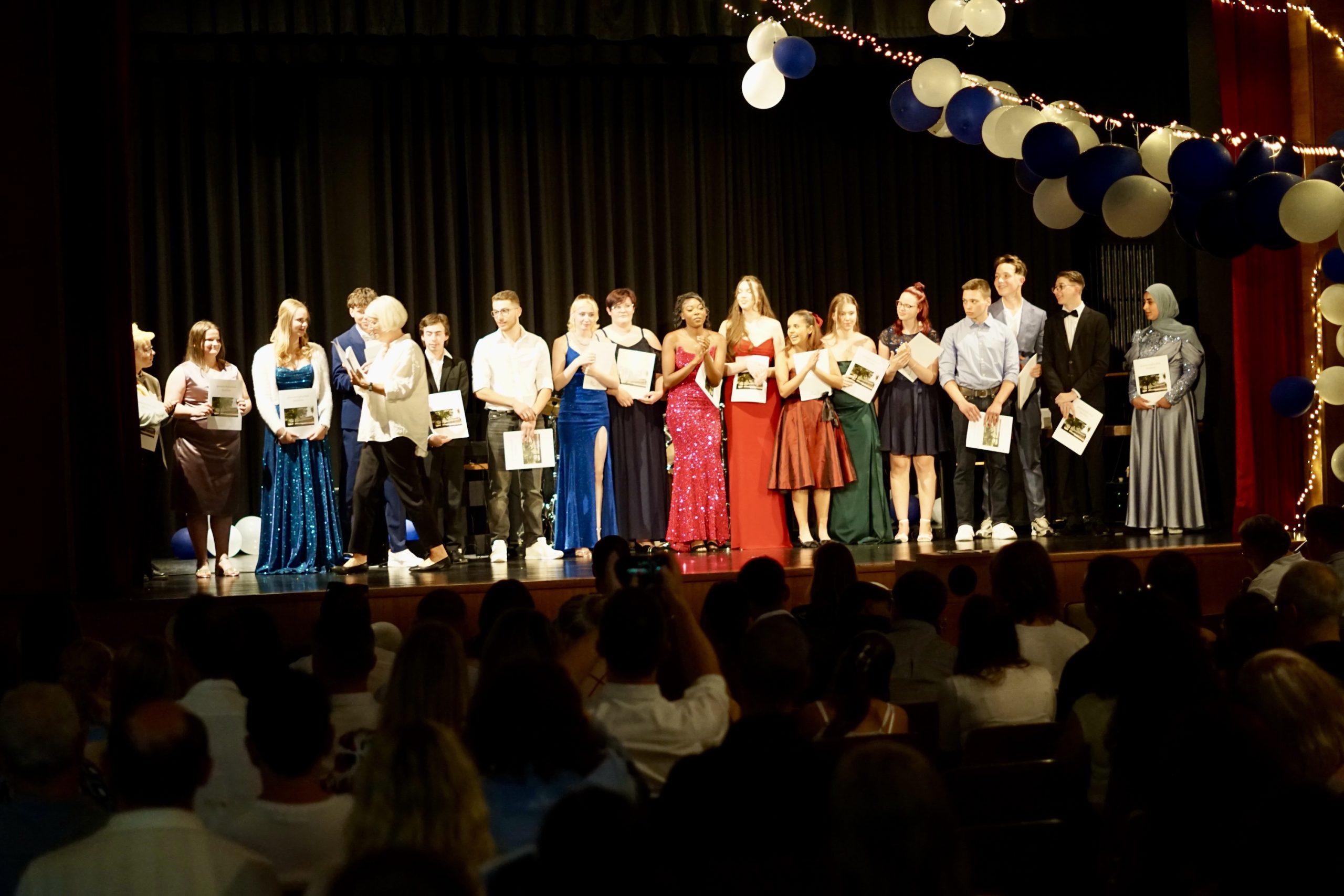 Dreißig Neuntklässler und zwanzig Zehntklässler konnten sich in diesem Jahr über ihre bestandenen Abschlüsse freuen und feierten aus diesem Anlass ihre Verabschiedung aus der Schule in unserer festlich geschmückten Aula. Mit Ihnen freuten sich unsere Schulleiter Herr Fink und Frau Thies, alle Lehrerinnen und Lehrer, Frau Tilch vom Förderverein, Oberbürgermeister Markus Herrera-Torrez und natürlich die Familien und Freunde der Absolventen. Neben vielen guten Wünschen für ihren weiteren Lebensweg gab es ein buntes Programm aus Erinnerungen und gemeinsamen Erlebnissen unserer nun ehemaligen Schülerinnen und Schüler. Für ein leckeres Buffet und Getränke hatten die 8. Klassen mit ihren Eltern gut vorgesorgt. Hier gibt es nun einige Fotos von der Feier. Durch Anklicken lassen sie sich in der Originalgröße herunterladen.