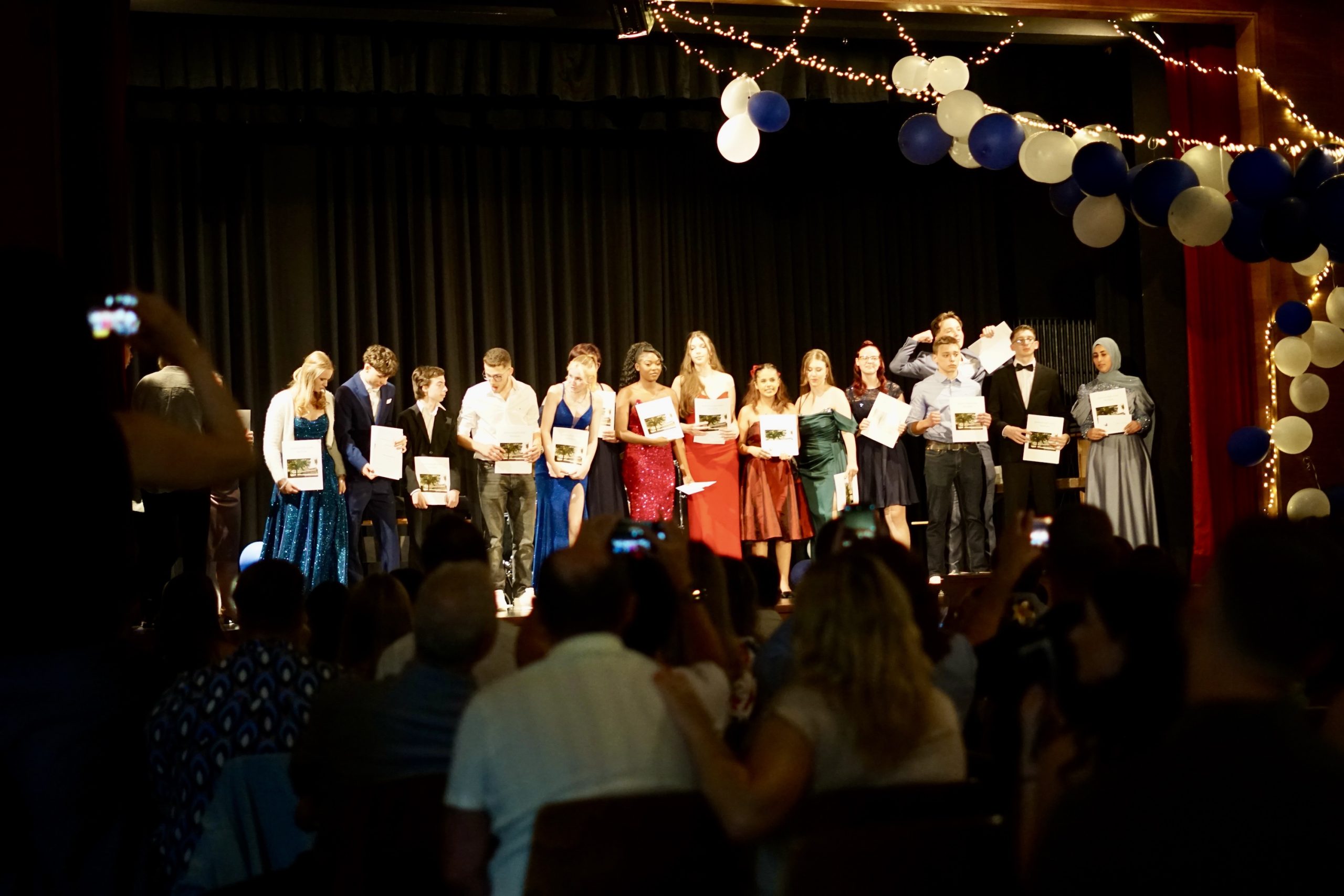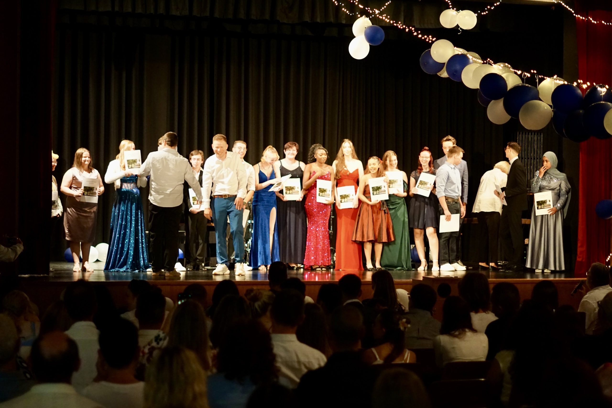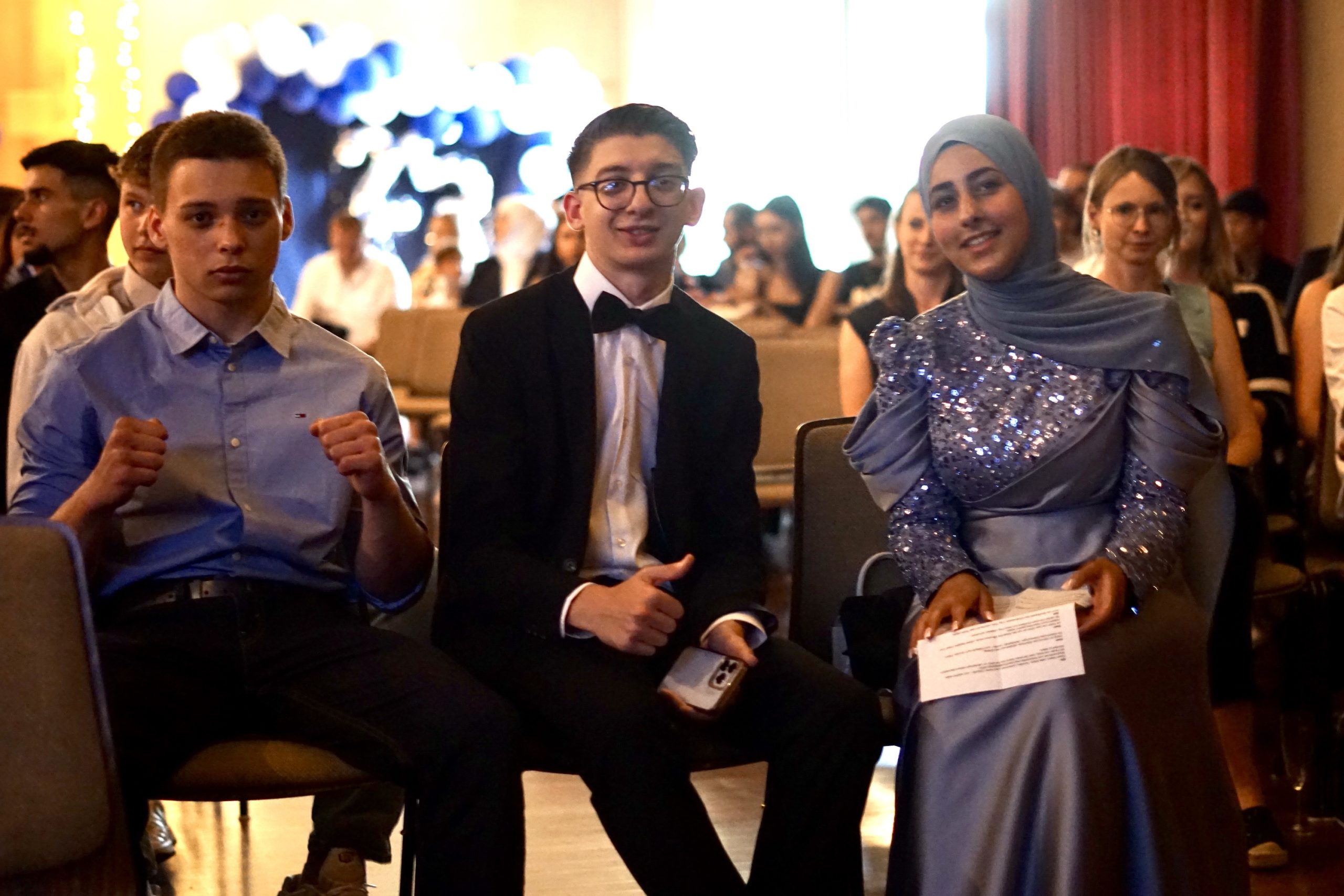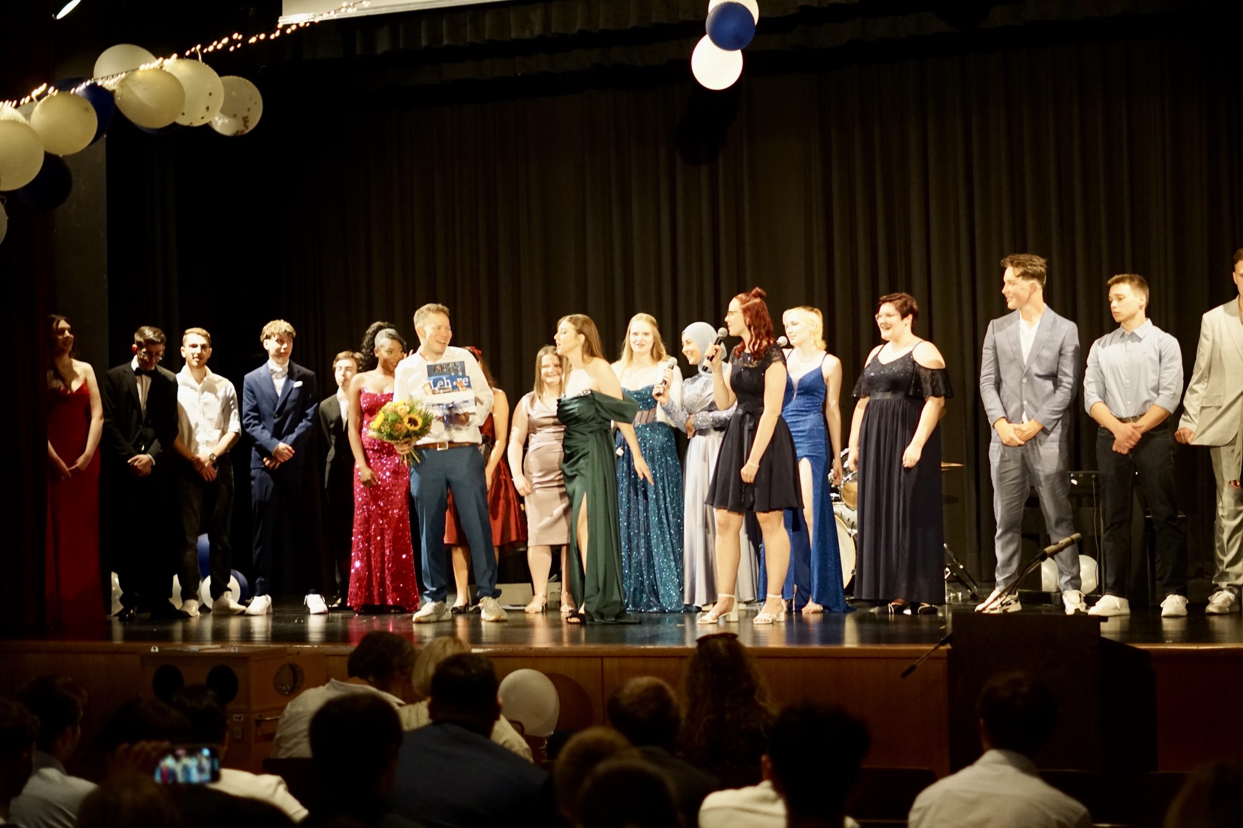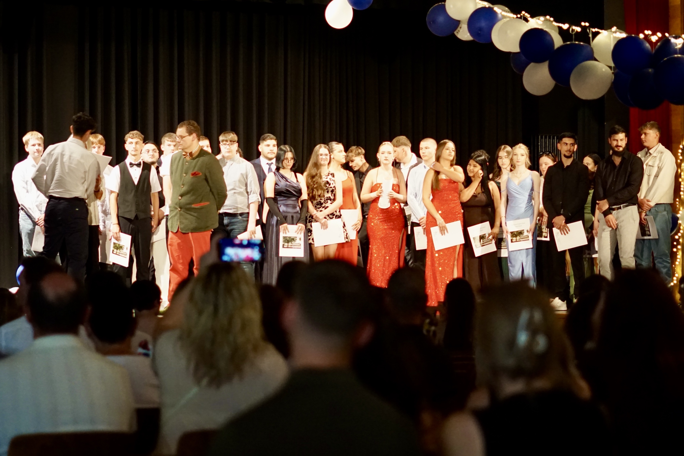 Dreißig Neuntklässler und zwanzig Zehntklässler konnten sich in diesem Jahr über ihre bestandenen Abschlüsse freuen und feierten aus diesem Anlass ihre Verabschiedung aus der Schule in unserer festlich geschmückten Aula. Mit Ihnen freuten sich unsere Schulleiter Herr Fink und Frau Thies, alle Lehrerinnen und Lehrer, Frau Tilch vom Förderverein, Oberbürgermeister Markus Herrera-Torrez und natürlich die Familien und Freunde der Absolventen. Neben vielen guten Wünschen für ihren weiteren Lebensweg gab es ein buntes Programm aus Erinnerungen und gemeinsamen Erlebnissen unserer nun ehemaligen Schülerinnen und Schüler. Für ein leckeres Buffet und Getränke hatten die 8. Klassen mit ihren Eltern gut vorgesorgt. Hier gibt es nun einige Fotos von der Feier. Durch Anklicken lassen sie sich in der Originalgröße herunterladen.