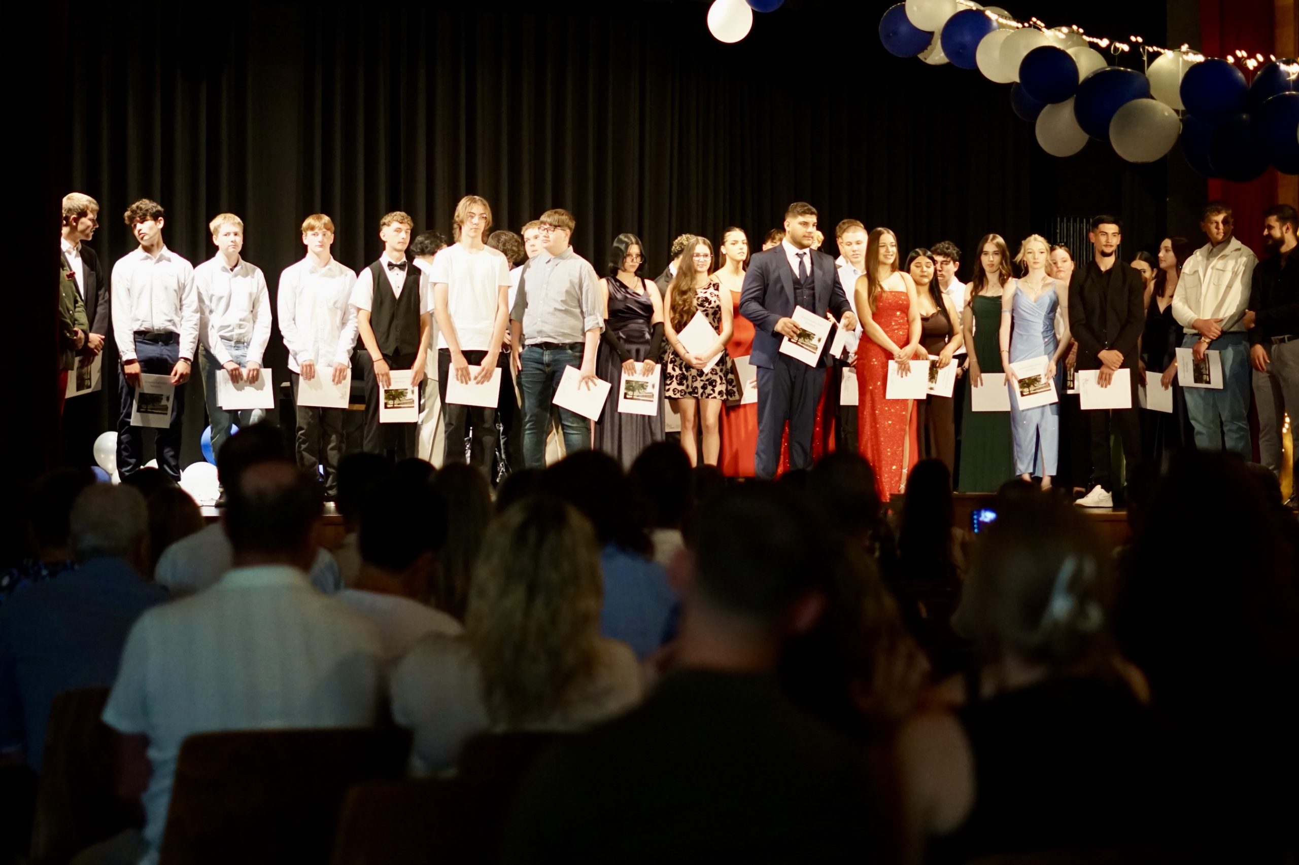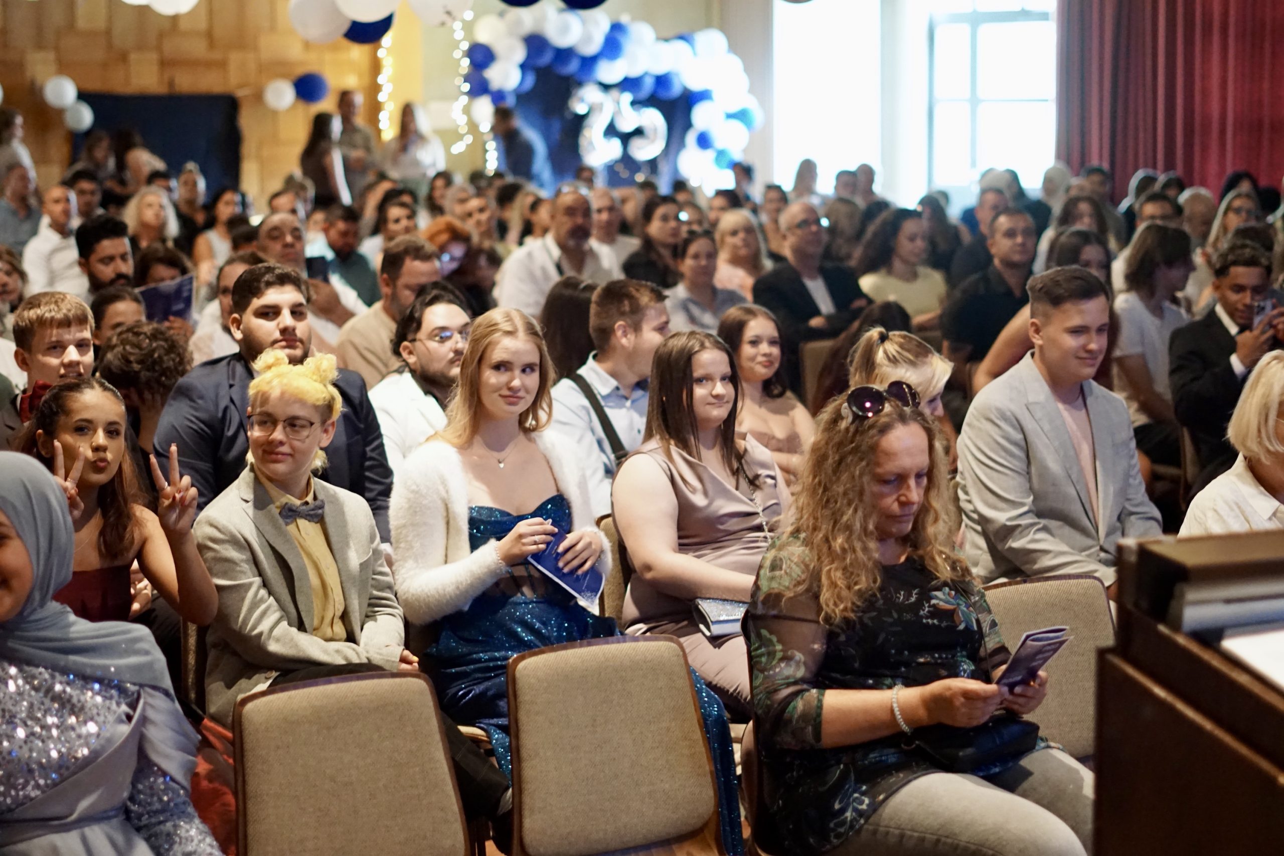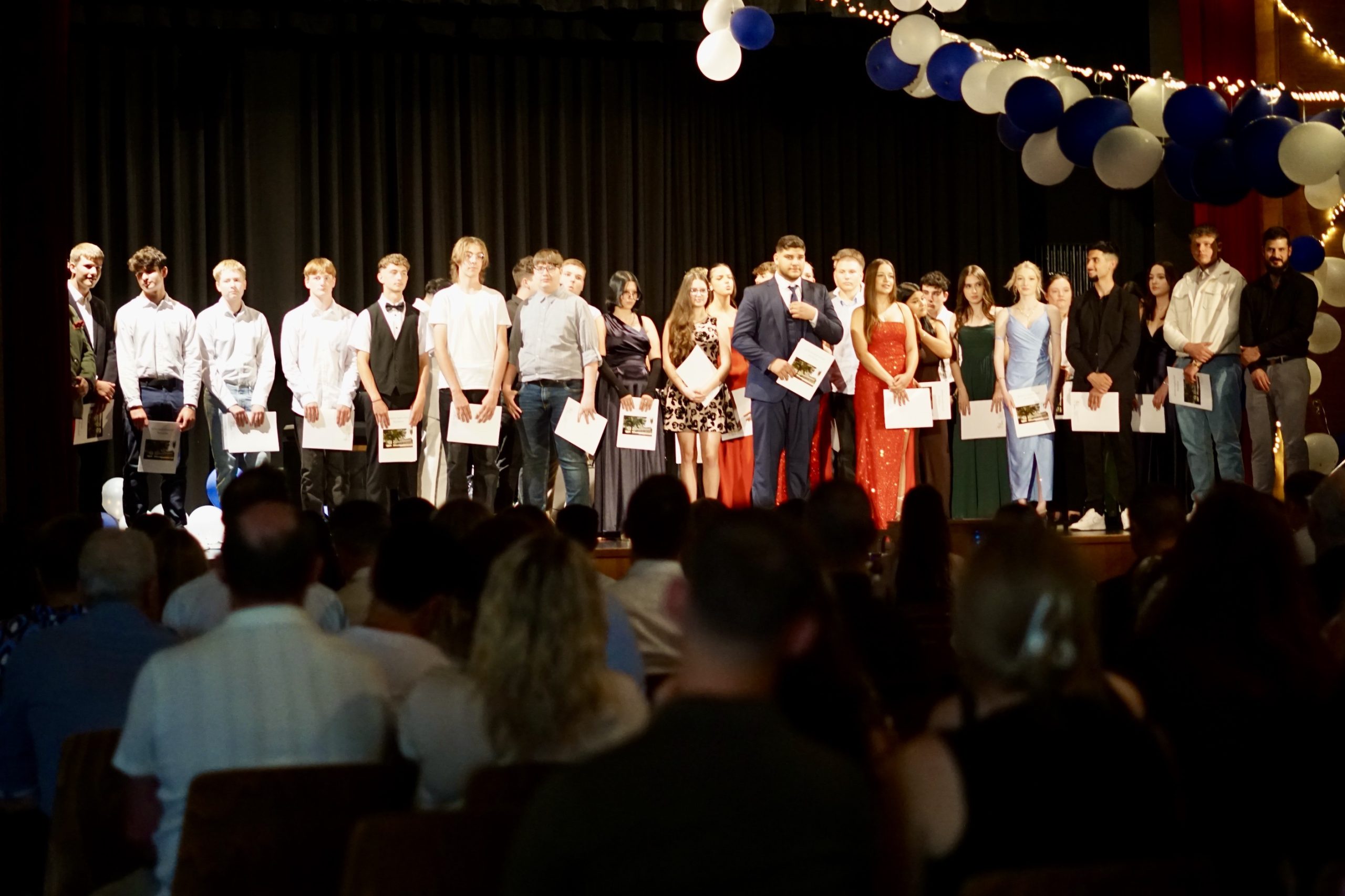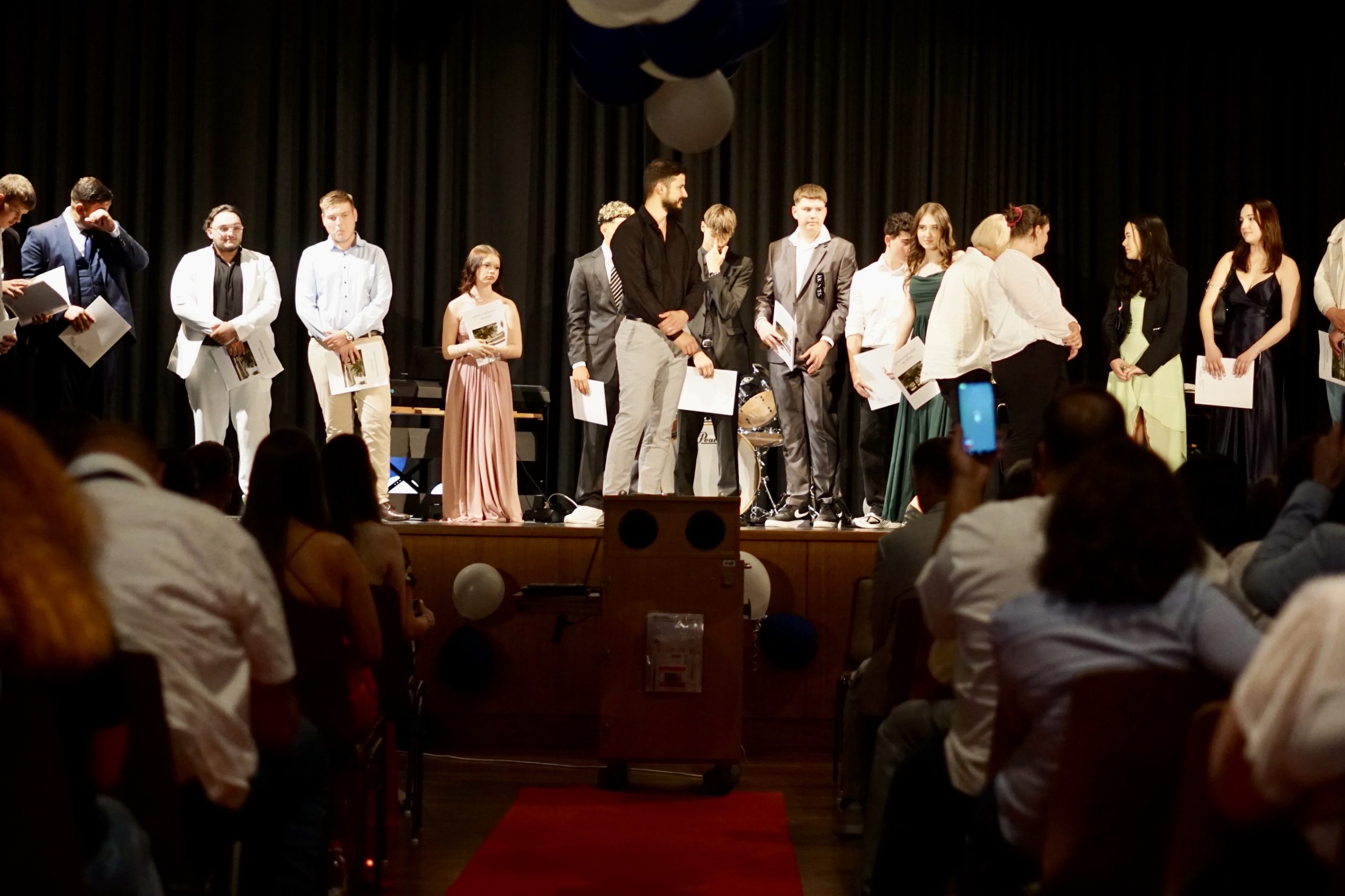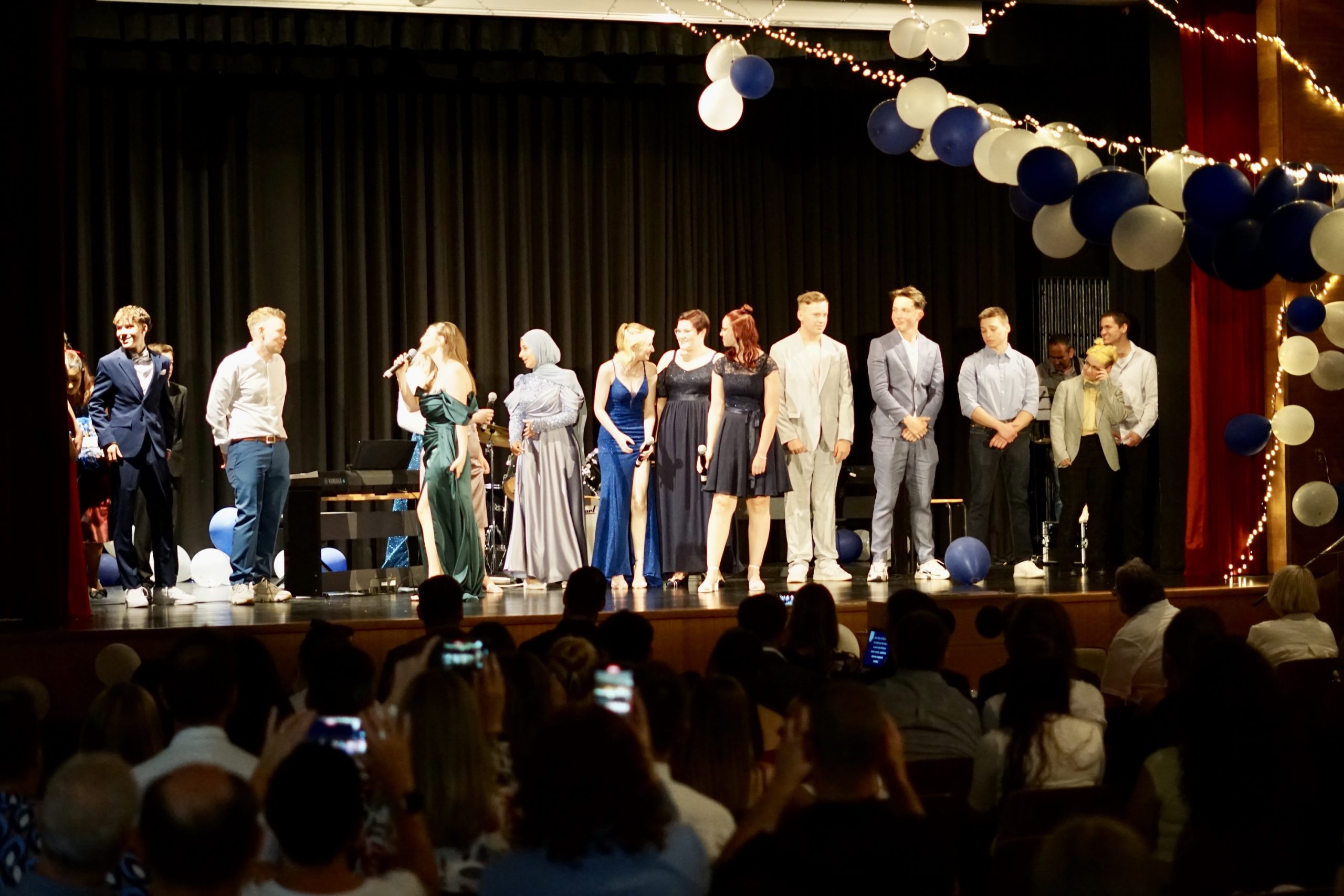 Dreißig Neuntklässler und zwanzig Zehntklässler konnten sich in diesem Jahr über ihre bestandenen Abschlüsse freuen und feierten aus diesem Anlass ihre Verabschiedung aus der Schule in unserer festlich geschmückten Aula. Mit Ihnen freuten sich unsere Schulleiter Herr Fink und Frau Thies, alle Lehrerinnen und Lehrer, Frau Tilch vom Förderverein, Oberbürgermeister Markus Herrera-Torrez und natürlich die Familien und Freunde der Absolventen. Neben vielen guten Wünschen für ihren weiteren Lebensweg gab es ein buntes Programm aus Erinnerungen und gemeinsamen Erlebnissen unserer nun ehemaligen Schülerinnen und Schüler. Für ein leckeres Buffet und Getränke hatten die 8. Klassen mit ihren Eltern gut vorgesorgt. Hier gibt es nun einige Fotos von der Feier. Durch Anklicken lassen sie sich in der Originalgröße herunterladen.