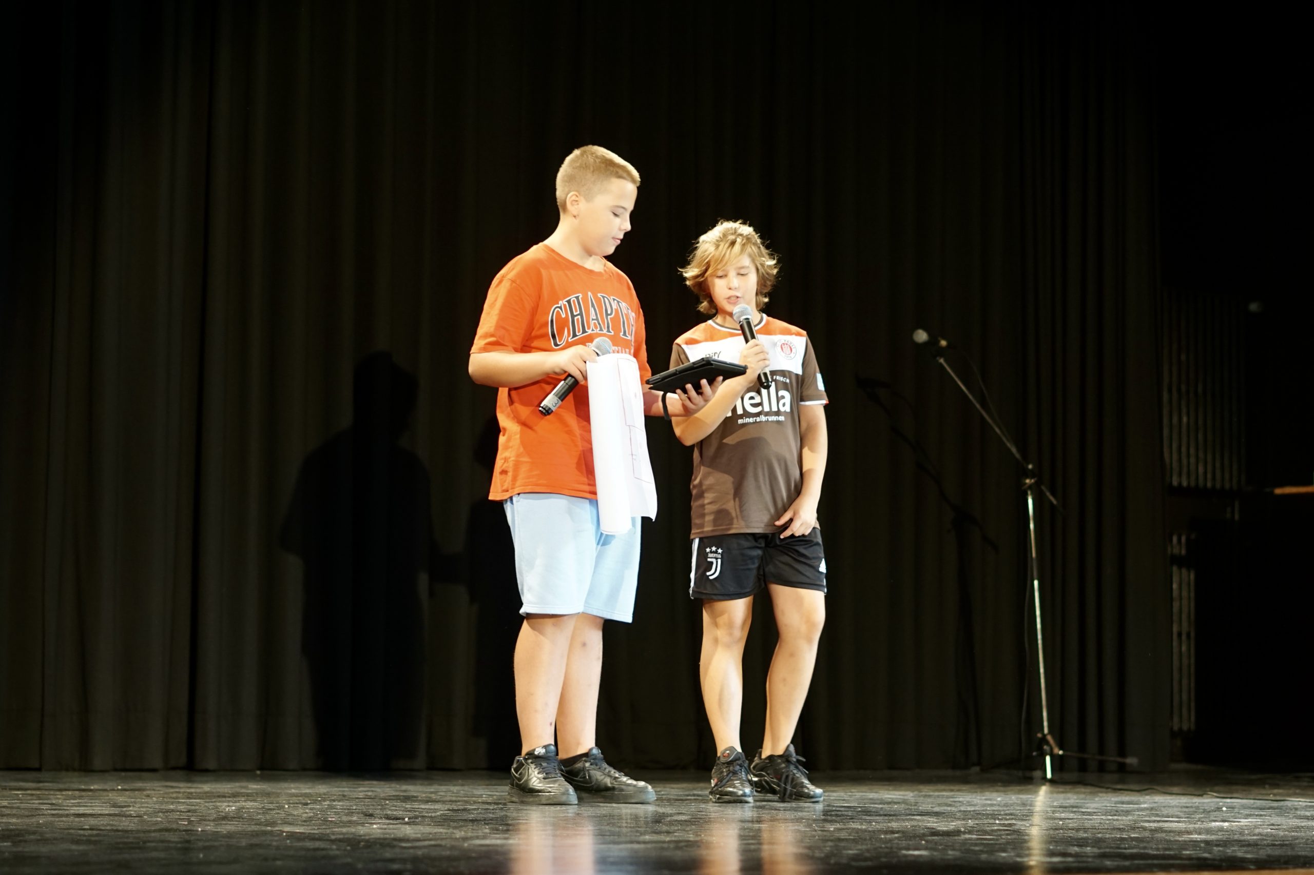 35 Mädchen und Jungen hatten sich mit ihren Eltern, jüngeren Geschwistern und weiteren Verwandten in der Aula zu ihrem ersten Schultag in ihrer neuen Schule versammelt, um diesen besonderen Tag gebührend zu feiern. Viele neue Menschen, neue Fächer und neue Räume gilt es nun kennenzulernen. Da kann einem am Anfang schon einmal ein bisschen der Kopf schwirren! Einige Besonderheiten unserer Schule wurden ihnen von unseren Sechstklässler gleich vor Ort vorgestellt und erklärt. Für alle Fragen, die sich in den ersten Schulwochen sicherlich noch ergeben werden, wurde jedem Fünftklässler ein „Pate“ aus der Klassenstufe 6 zur Seite gestellt, der sich in der ersten Zeit um ihn kümmert und für ihn da ist. Da finden sich alle sicherlich schnell zurecht. Herzlich willkommen in eurer neuen Schule!